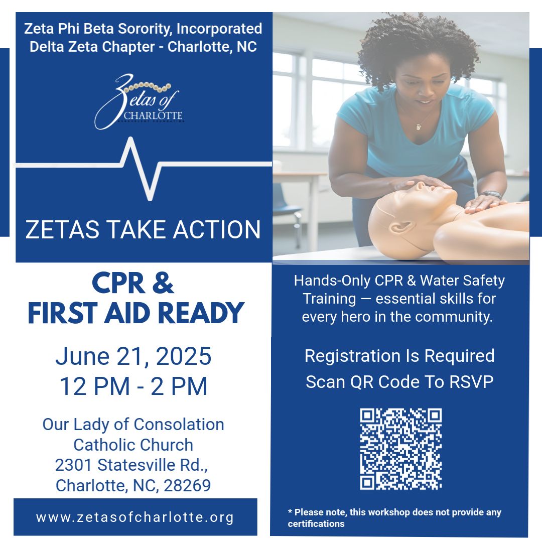 Step up, save lives, and gain the skills that make a difference. Join the Zetas of Charlotte for a powerful CPR & First Aid workshop.
