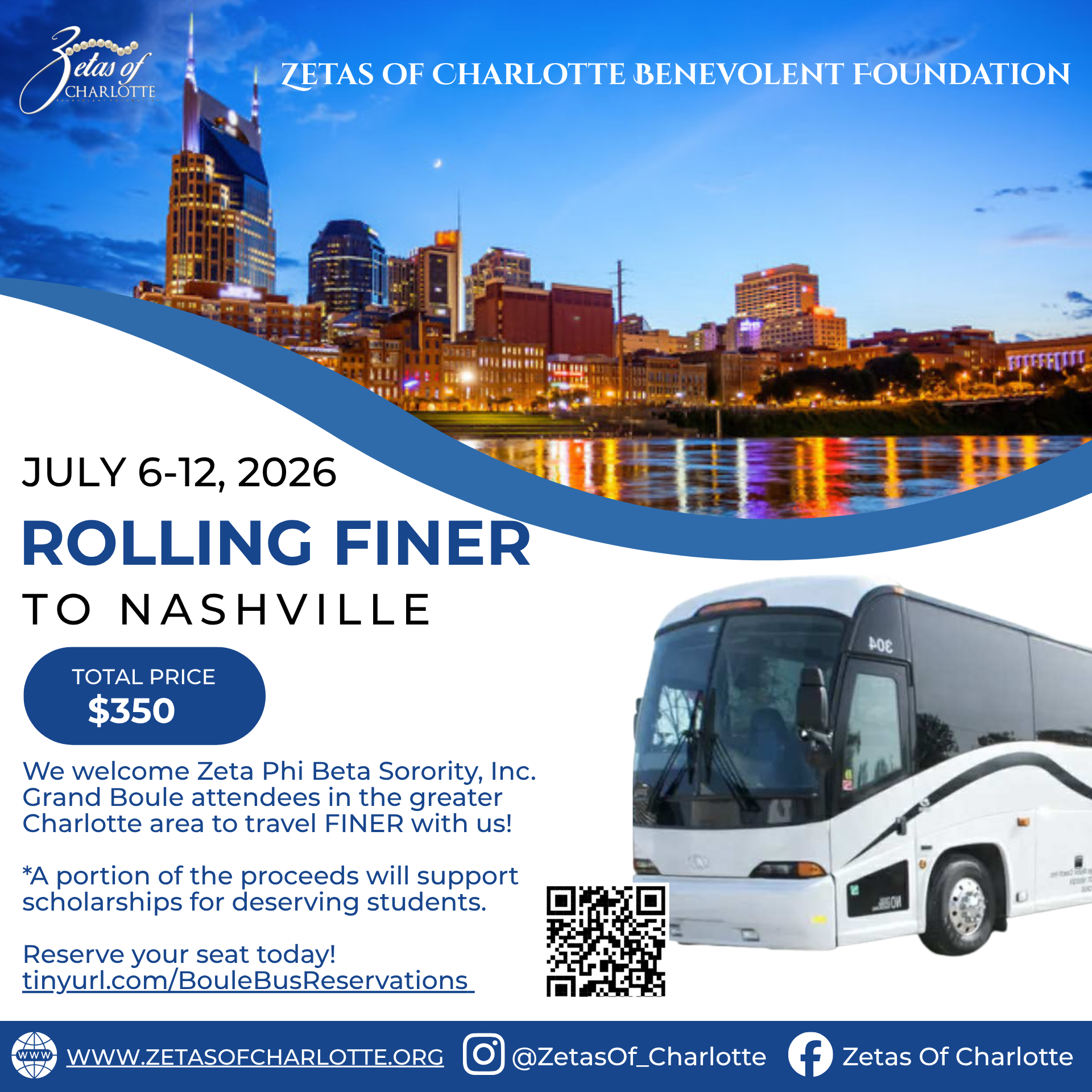 Relax, ride, and arrive in style! Join us as we travel from the Queen City to the Music City for Zeta Phi Beta Sorority, Incorporated’s 2026 Grand Boulé in Nashville, Tennessee. This is more than just a trip—it’s sisterhood, culture, and celebration on wheels.