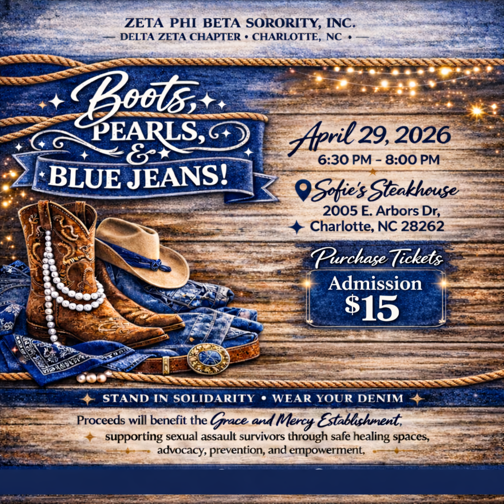 Join us for an evening of style, community, and purpose as we support National Denim Day and raise awareness for survivors of sexual violence. For just $15, guests are invited to wear their favorite boots, pearls, and denim while coming together for an important cause. Purchase your tickets today and stand with us in making a difference.