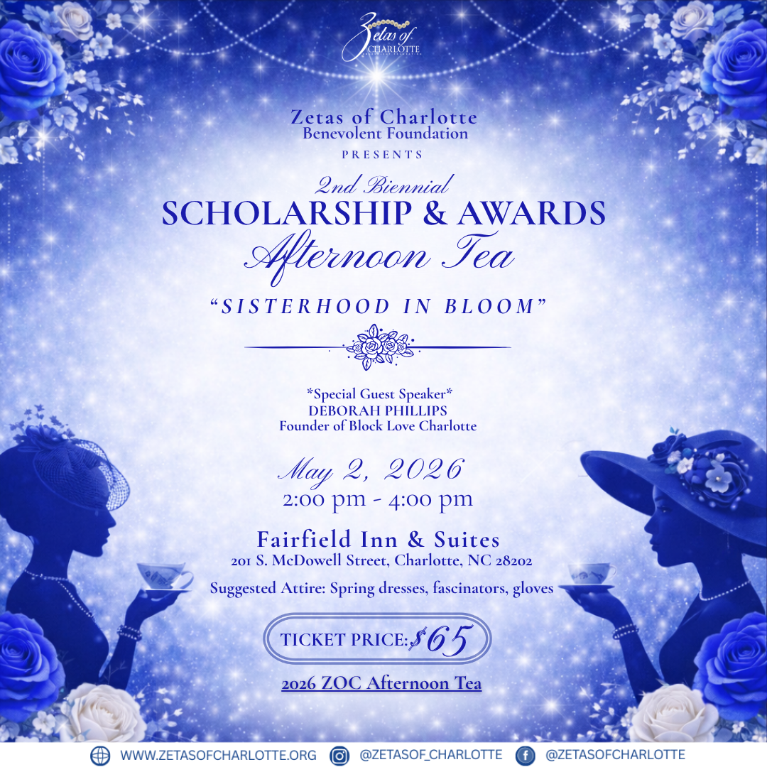 The Zetas of Charlotte Benevolent Foundation is proud to present our 2nd Biennial Scholarship and Awards Afternoon Tea, themed Sisterhood in Bloom.