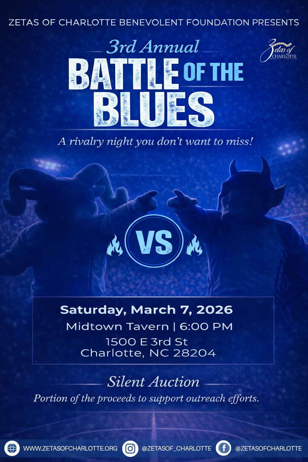 Battle of the Blues at Midtown Tavern. A high-energy rivalry night featuring a silent auction and supporting local community outreach.